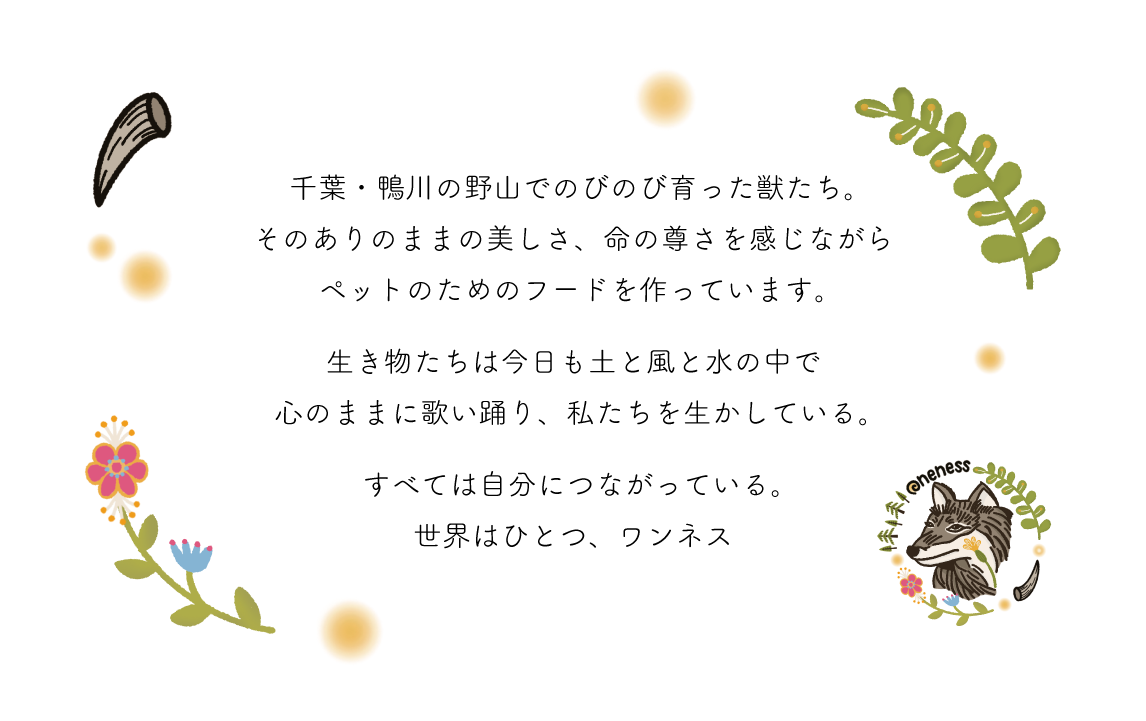 「ジビエを自然のギフトとして必要なところに届けたい」そんな思いから2024年に活動を始めました。私たちの暮らす千葉県鴨川市でも害獣として捕らえられた野生動物のほとんどが、活用されることなく人知れず命を終えていきます。命に向き合う猟師、懸命に生きる野生動物、そのどちらにも敬意を持ちフード作りを行っています。